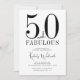 Moderne Fünfzig und Fabelhaft Schwarz-Weiß-Minimal 50. Geburtstagseinladung, die Sie personalisieren und für Ihre fünfzigste Geburtstagsfeier versenden können. Merkmale chic stilvolle Typografie mit einer Signaturschrift und einem sauberen modernen Layout.