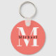 Modern Minimal Initial + Name Coral Monogram Schlüsselanhänger