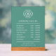 This sleek Teal Green acrylic sign displays your business opening hours in a modern and minimalist style. Perfect for corporate branding, it’s a simple way to keep customers informed. Customizable with your text, this sign is ideal for small businesses looking to enhance their promotional presence. Elevate your customer experience with this stylish, branded solution!