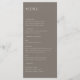 Elevate your reception tablescape with this modern taupe wedding menu card featuring a clean, minimalist layout and refined typography. The vertical design and soft neutral tone create a timeless, sophisticated look that complements formal, rustic, or contemporary celebrations.