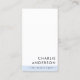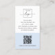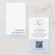 Moderne, vertikale Visitenkarten mit Ihrem Namen und Titel auf der Vorderseite und anpassbare Vorlagenfelder für Ihre Kontaktinformationen, Logo und QR-Code auf der Rückseite. Weiß und hellstaubige blaue oder benutzerdefinierte Farben. Mit dem Designwerkzeug können Sie Schriftart und Farben ändern, Elemente verschieben und verändern.