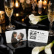Streamline your wedding planning with this sleek and contemporary design perfect for the tech-savvy couple. The layout features a prominent QR code for digital responses, accented by a solid black heart motif and elegant handwritten script typography in a monochrome palette. Easy to customize with your specific website URL and deadline details.