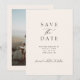 Modern Minimalist Black & Ivory Photo Wedding Save the Date with a mix of elegant serif and script font. Photo on the reverse.