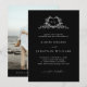 This elegant photo wedding invitation features refined calligraphy and clean typography in a simple, timeless layout. The delicate botanical monogram heart shaped crest adds a subtle romantic touch while keeping the design modern and chic. Perfect for couples who love minimalist, classic stationery with a hint of rustic charm, this invitation suits formal, garden, or vintage-inspired weddings. The sophisticated black and white palette ensures a stylish and timeless look that will beautifully introduce your special day.