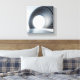 A striking minimalist digital artwork featuring a massive, multi-layered circular structure creating a tunnel-like perspective towards a bright, infinite void. The design emphasizes rhythmic symmetry, architectural depth, and a clean futuristic aesthetic. This sophisticated piece is ideal for modern galleries, high-tech office spaces, or contemporary minimalist living rooms.