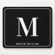 Modern Minimalist Monogram & Name - Stylish Black Mousepad