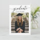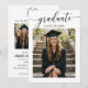 "Celebrate your academic achievement with this modern and minimalist graduation announcement. The front features a large portrait photo framed by elegant hand-lettered brush script, while the back offers a stylish four-photo collage to showcase your favorite memories. This clean black and white design is perfect for high school or college graduates looking for a sophisticated way to invite friends and family to their graduation party or reception."