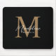 Modern Minimalistisches Script Black Gold Monogram Mousepad