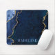 Moderne elegante Watercolor Blue und Gold Marble Agate Geode Mouse Pad personalisiert mit Ihrem Namen.