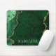 Moderne elegante Aquarellfarbe Smaragdgrün und goldfarben Marmormousine Agate Geode Mouse Pad personalisiert mit Ihrem Namen.