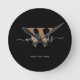 Modern Monogram Black Gold Script Initial Name Runde Wanduhr