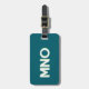 Modernes minimalistisches Monogramm-Erstdesign, das auf Personalisierung umgestellt werden kann, mit den Details auf der Rückseite. Weiß auf aquamarin grünem Hintergrund mit einem hellapfelgrünen Tropfschatten.