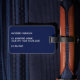 Moderne Kleinschreibung Typografie minimalistisches Monogramm Initialdesign, das in Personalisierung umgewandelt werden kann, zusammen mit den Details auf der Rückseite. Weiß auf marineblau-blauem Hintergrund.