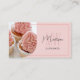 Elevate your bakery’s branding with this customizable pink business card. Personalize it with your monogram initials, name, or text, and showcase a photo of your delicious treats. The back includes space for your contact details, social media, and a custom QR code for easy access to your website or menu. Replaceable icons let you tailor it to your business needs. Perfect for bakers, pastry chefs, and cake decorators who want a stylish and professional look!