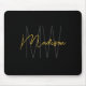 Modern Monogram Name Script Black Gold Mousepad