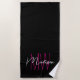 Modern Monogram Name Script Black Pink Strandtuch
