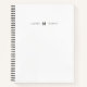 Modernes, minimalistisches Notizbuch mit Name und Monogramm in einem stilvollen schwarzen Schriftart. Der helle, weiße Hintergrund deckt sowohl die Vorderseite als auch die Rückseite ab. Ihre Wahl des Stils, des Innenpapiers und der Spiralfarbe. Ideal für Tagungshinweise, Listen, Journalisierung und vieles mehr. Vollständig anpassbar. Entworfen von Kimberly Brett.