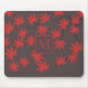 Stylish red and grey monogrammed mousepad with elegant maple leaf art.