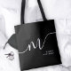 Moderne Monogram Script Kalligrafie Schwarz-weiß Name Tote Bag. Einfache Anpassung eleganter Skripttypografie Monogramm. Perfekte mit Monogramm Namensgeschenkidee!