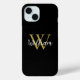 Moderne und einfache schwarze iPhone-Hülle mit Monogramm und Skript-Vorname. Passen Sie Ihren eigenen Initial und Namen an. Matching-Elemente verfügbar. Bitte nutzen Sie den unten stehenden Button für die Nachricht, um weitere Anpassungen und spezielle Anfragen zu erhalten. © Zoe Chapman Design