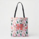 Erstellen Sie eine individuelle Tasche mit Ihrem Vornamen in schwarz auf einem hellrosa Monogramm, die auf einem rosa Blumenhintergrund anfänglich eingeprägt ist. WEITERE Designs in unserer Sammlung.