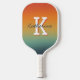 Modern monogrammed cool gradient effect pickleball paddle for the pickleball player in your life. This pickleball paddle can be personalized with the inclusion of your choice of monogram initial and name - both of which will appear on the front and back. This Pickleball Paddle is ideal for wide range of players and experience. Featuring a hand wrapped grip and fiberglass & polypropylene honeycomb core, this lightweight paddle offers excellent feel and ample power for the competitive player. The smooth hitting surface and conventional shape allows for a bigger sweet spot for more solid contact. An ideal gift for the pickleball lover in your life, for any special occasion.