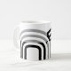 Moderne Kaffeemaschine mit weißem und schwarzem, quadratischem Blockhintergrund. Die Tasse ist in einem modernen Design gehalten. Zeigt ein Muster in Weiß an, das durch eine Änderung des ursprünglichen Musters geändert werden kann.