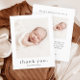 Ein kleines Foto Dankeschön-Karteikarte mit modernem Stil und ein Foto auf der Vorderseite. Der Rücken hat ein zweites Foto und einen großen Vollnamenheader mit einer persönlichen Nachricht aus der Familie. Klicken Sie auf die Schaltfläche Bearbeiten, um dieses Design mit Ihren Fotos und Details anzupassen.