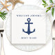 Moderne nautische Papierservietten mit marineblau Anker und das Sprichwort Willkommen an Bord. Die Vorlage macht es einfach, mit Ihrem Bootsnamen zu personalisieren.
