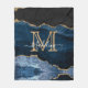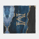 Modern Navy Blue Gold Black Monogram Script Fleecedecke