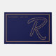 Modern Navy Blue Gold Monogram Script Family Name Fußmatte