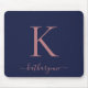 Modern Navy Blue Rose Gold Monogram Script Mousepad