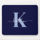 Modern Navy Blue Script Monogram Mousepad