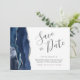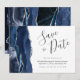 Modern Navy Blue Silver Agate Save the Date Card Einladung