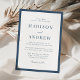 Celebrate your wedding day with this Modern Navy Border wedding invitation, featuring a rich navy blue frame that brings depth and timeless sophistication to a clean, minimalist layout. The classic navy border creates a refined contrast against the white background, while elegant serif typography and a subtle script accent lend a polished, understated finish. Ideal for formal ceremonies, traditional venues, and modern classic celebrations, this invitation offers a versatile foundation that feels both contemporary and enduring. Personalize the wording to create a cohesive invitation that sets a confident and elevated tone for your wedding stationery suite.