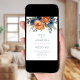 Modern Navy Burnt Orange Florals QR Code Wedding Einladung