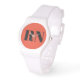 Moderne Nurse RN Orange Terracotta Custom Watch hat eine weiße Band und dunkle pfirsichfarbene mit "RN" in grauen Buchstaben ・ Klicken Sie auf Anpassen, um Ihren Beruf zu wechseln (Beispiel: NP, RN, LPN, CNA)