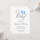 Senden Sie diese einfachen und stilvollen Babydusche an Familie und Freunde. Sie sind mit moderner Typografie und niedlichen handbemalten Wasserfarbenfüßen in Pastellblau mit geschmolzener Kante dekoriert. Einfach anpassbare Original Watercolor © Michele Davies.