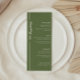 Eine moderne und elegante Olivgrün Hochzeitskarte. Passen Sie Ihre Hochzeitsmenüpunkte an, Ihre Namen und Ihr Hochzeitsdatum am Ende der Karte.