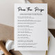 Voici notre Modern Pass the Prize la Fête des mariées Game Card - une touche contemporaine sur la douche nuptiale traditionnelle divertissement! Ce jeu, aussi connu sous le nom de Pass the Poem, ajoute un élément amusant et unique à votre célébration. Conçu avec un style moderne et sophistiqué, cette carte de jeu ouvre la voie à une douche nuptiale inoubliable. Idéal pour les douches en couple et les soirées bachelorette, il promet une soirée pleine de rire et de joie lorsque les clients participent à cette activité engageante. Adaptée à la future mariée et à son voyage vers "I Do", cette carte de jeu garantit une expérience inoubliable pour tous les participants. Unique et personnalisable, il ajoute une touche personnalisée à votre événement, ce qui le rend vraiment mémorable pour la mariée et le marié. Faites de votre fête grâce à notre Carte de jeu Fête des mariées de laissez-passer moderne et créez des souvenirs chéris en célébrant l'amour et le rire avec la future Mme et ses proches.