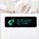 Stilvolle schwarze Rücksendeadressen-Aufkleber mit farbenfrohen Grafiken eines modernen Pfauendesigns, auf der links Seite. Rücksendeadresse Text, in aqua, ist vollständig anpassbar, um Ihre Bedürfnisse Anzug. Ideal für jeden Tag Gebrauch oder besondere Anlass.