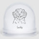 Celebrate the season with this adorable Spaniel dog snow globe! This design includes a black and white dog with a place to add a name below.