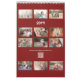 Add your favorite photos to create your own modern 2026 calendar. The 12 images you upload for the months will automatically appear in grids on dark red on the front and back covers. Add the year in the sidebar and it will appear on the cover and back in a bold modern font. You can also customize the language, which holidays appear, and calendar format in the sidebar. Makes a great gift!