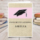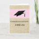 Modern Pink Herzlichen Glückwunsch Rustic Abschluss Card mit Graduate Name. Abschluss-Karte mit Graduierungsmütze, Text Herzlichen Glückwunsch und ein Name des Graduierten auf der Vorderseite - personalisieren Sie mit Ihrem Namen. Der Text ist beige rustikal und die Kappe ist pink. Personalisieren Sie den Text innerhalb der Karte, um Ihre Bedürfnisse zu Anzug.