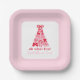 Modern Pink Red Tree Bow 1st Birthday Pappteller