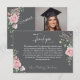 Modern Pink Roses Script Graduation Photo Dankeskarte
