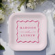 Modern Pink Wavy Frame Wedding Pappteller