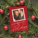 Modern Red Script glücklichste Urlaubsfotokarte Feiertagskarte
