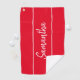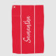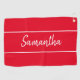 Mit diesem Modern Red White Script Monogram Womens Golf Handtuch können Sie Ihr Spiel fortsetzen. Es handelt sich um ein elegantes minimales Design mit anpassbarem Farbhintergrund und weißem, trendigem, handgeschriebenem Script-Schriftart in der Mitte. Die perfekte Geschenkidee für Golferinnen!