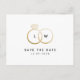 Ein modernes Monogramm bekommt Glam mit verflochtenen Imitaten, goldenen Eheringsringen und einem personalisierten Text, der diese Save the Date Postkarte zu einem neuen Klassiker mit gestrafftem Text in Schwarz und Weiß macht. Personalisieren Sie den gesamten Text dieses minimalen Save the Date und fügen Sie ein Verlobung-Foto für einen gepflegten und einfachen Blick, während Sie Ihre Gäste zu Save the Date für Ihren großen Tag.